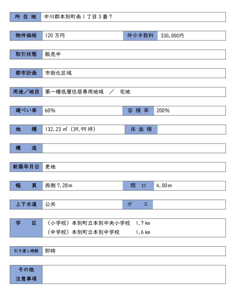 帯広市南町南9線 売土地(市街化調整区域) 350万円