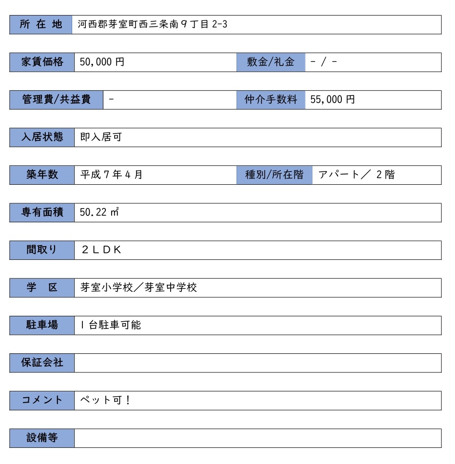 芽室町 ドリームシャトー(ペット可) 2LDK 50,000円