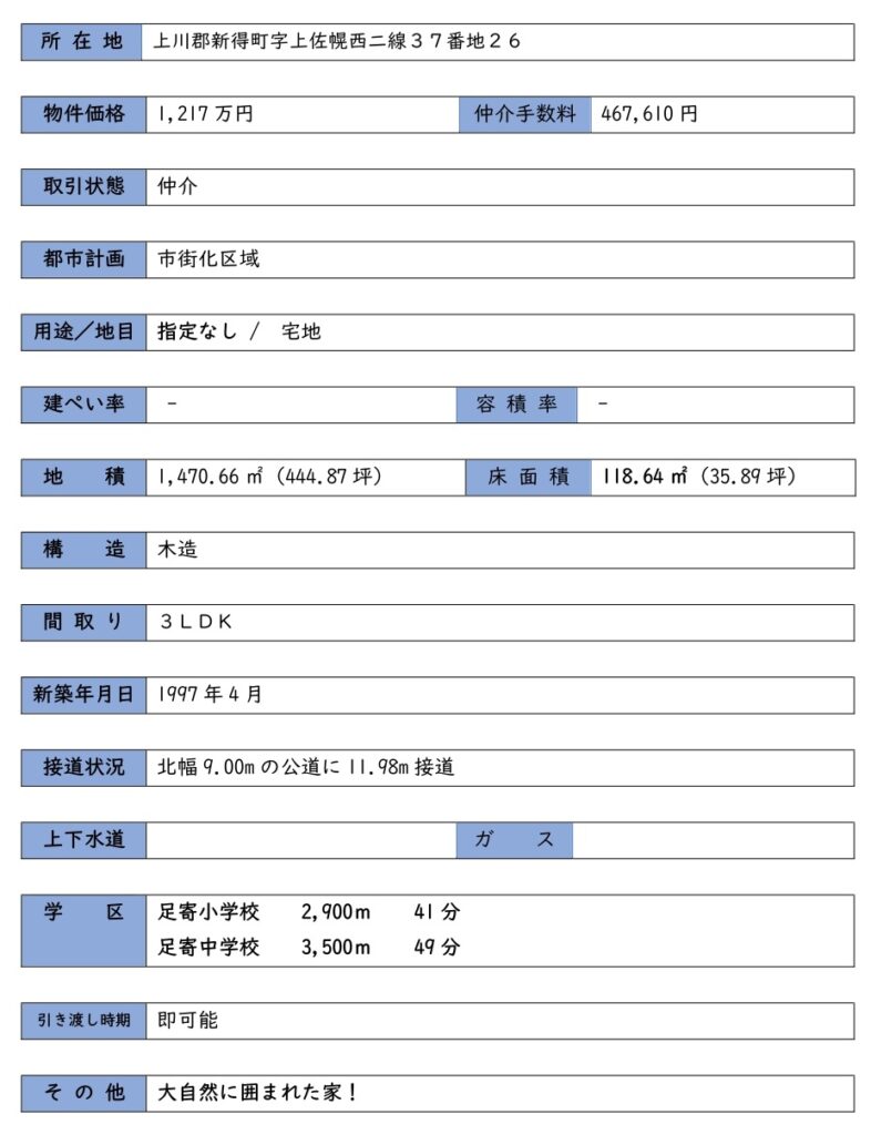 (商談中)新得町上佐幌中古住宅 1,217万円