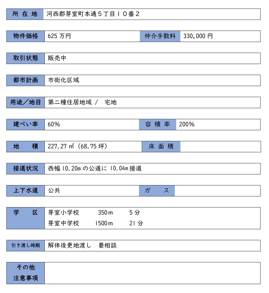芽室町本通5丁目売土地(解体更地渡し) 625万円