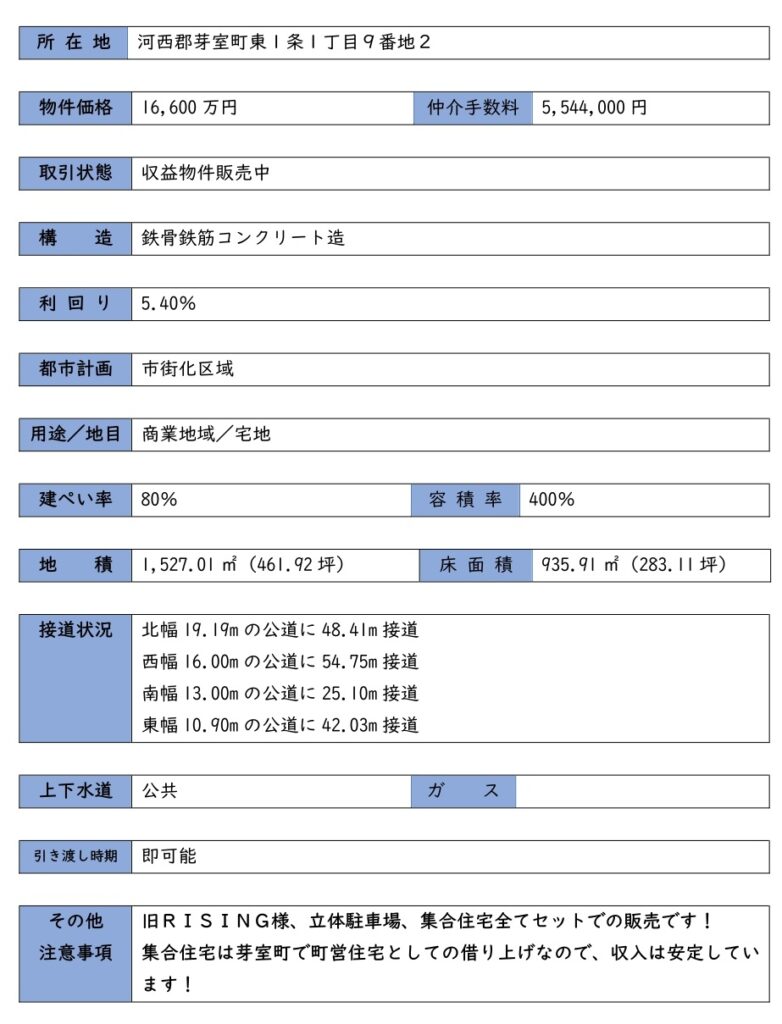 芽室町収益物件!旧RISING様、立体駐車場、芽室町借り上げ集合住宅! 16,600万円 売買物件 Twitter Facebook はてブ Pocket LINE コピー 2025.12.29 物件情報